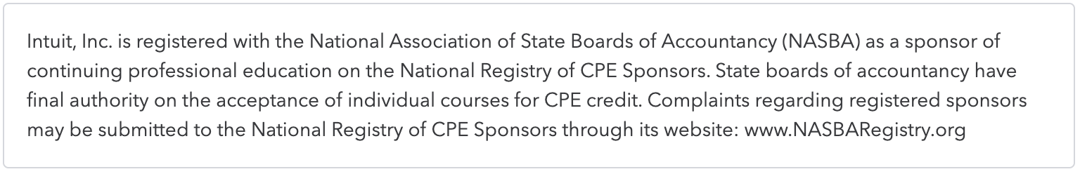Intuit’s bookkeeping course provides zero CPE. This is important for reasons that will be clearer below.